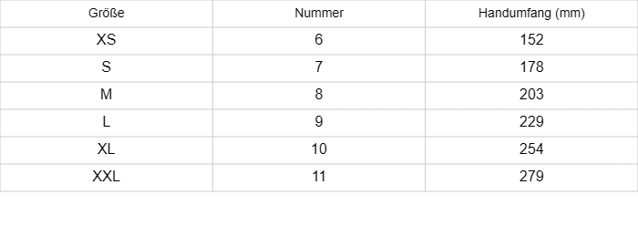 Handschuhgröße: | 6, 7, 8, 9, 10, 11 |