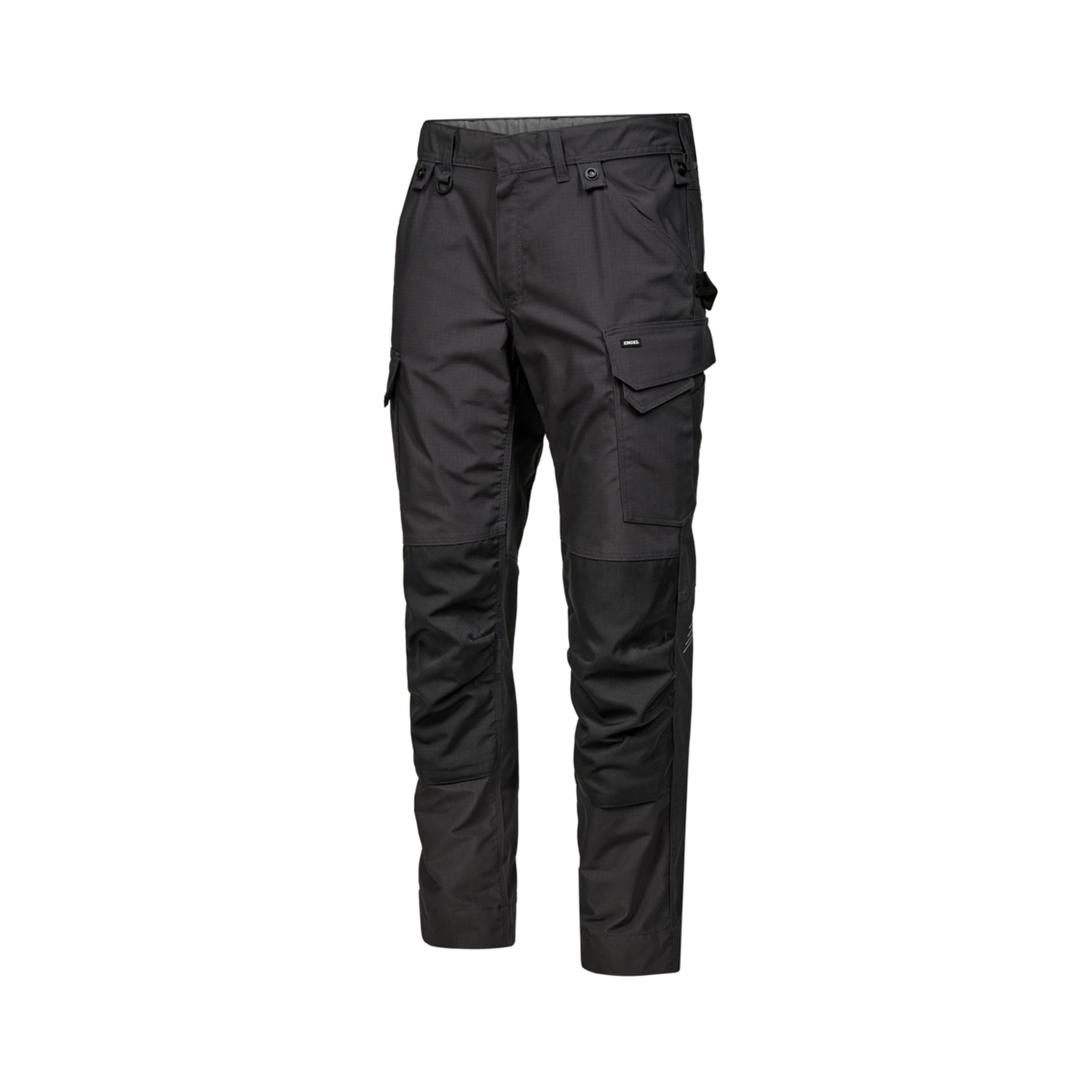 Durchdachte Details wie ein verdeckter Knopfverschluss, der empfindliche Oberflächen schützt, und ein Gummizug im Rückenbereich sorgen für optimalen Sitz auch bei intensiven Tätigkeiten. Knietaschen mit CORDURA®‑Verstärkung sowie zwei Einstellmöglichkeiten für Knieschutzkissen ermöglichen individuelle Anpassung und effektiven Schutz. Zahlreiche funktionale Taschen – unter anderem eine Oberschenkeltasche mit Reißverschluss, separate Handytasche, verstärkte Zollstocktasche und ein Hammerriemen – bieten ausreichend Stauraum für Werkzeug und Zubehör. Ein praktischer Riemen mit D‑Ring ermöglicht die sichere Befestigung von Ausweisen oder kleinen Werkzeugen.