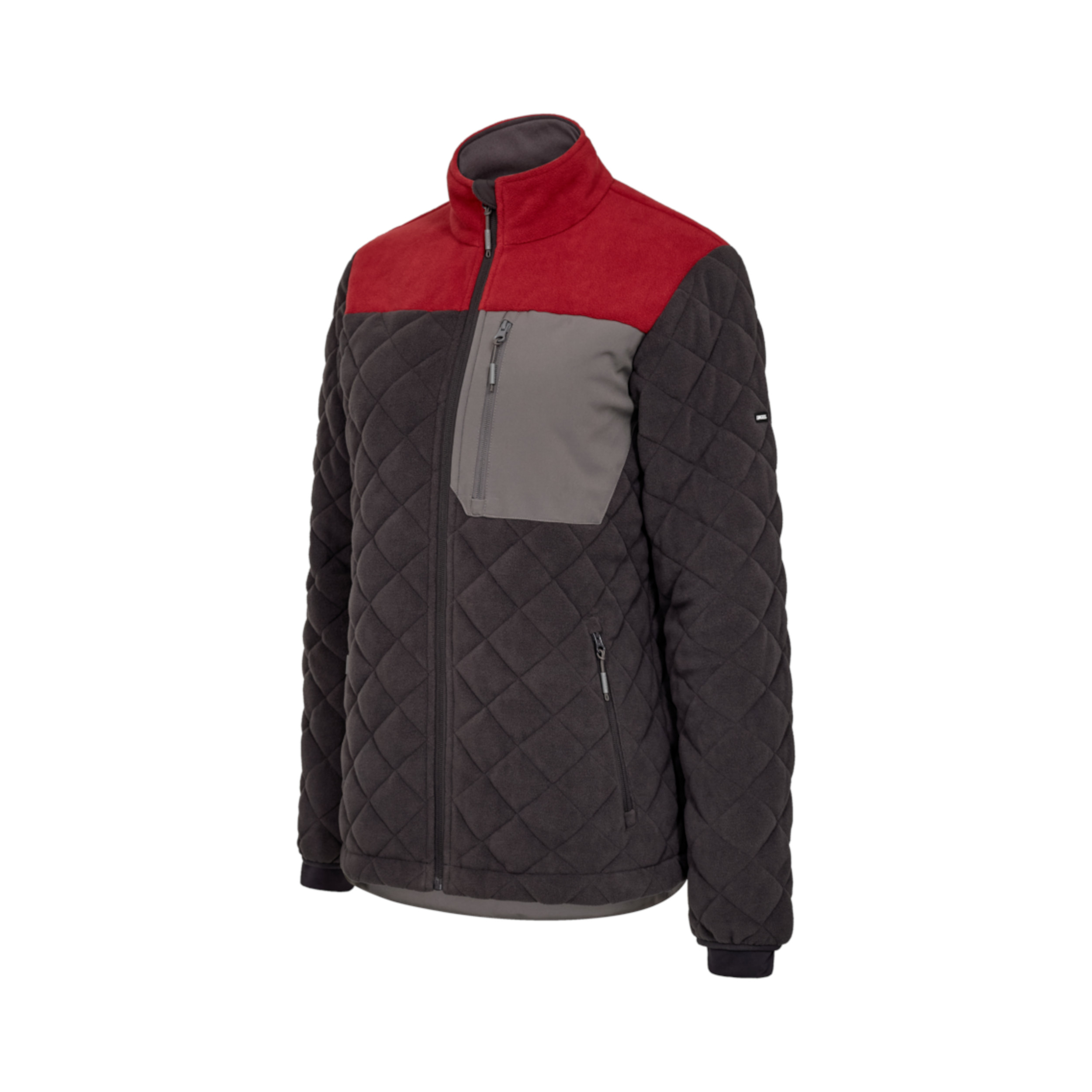 Dank der Anti-Pilling-Ausrüstung bleibt die Jacke auch bei regelmäßigem Einsatz formstabil und ansehnlich. Die gesteppte Vorderseite ist leicht wattiert und bietet zusätzliche Wärmeisolierung im Brustbereich – besonders vorteilhaft bei wechselnden Temperaturen oder bei Arbeiten im Freien. Praktische Details wie zwei Seitentaschen mit Reißverschluss und eine durchgehende Frontzipper-Lösung mit Kinnschutz machen die Jacke alltagstauglich und sicher. Der elastisch verstellbare Saum sorgt für eine körpernahe Passform und hält Zugluft effektiv ab.