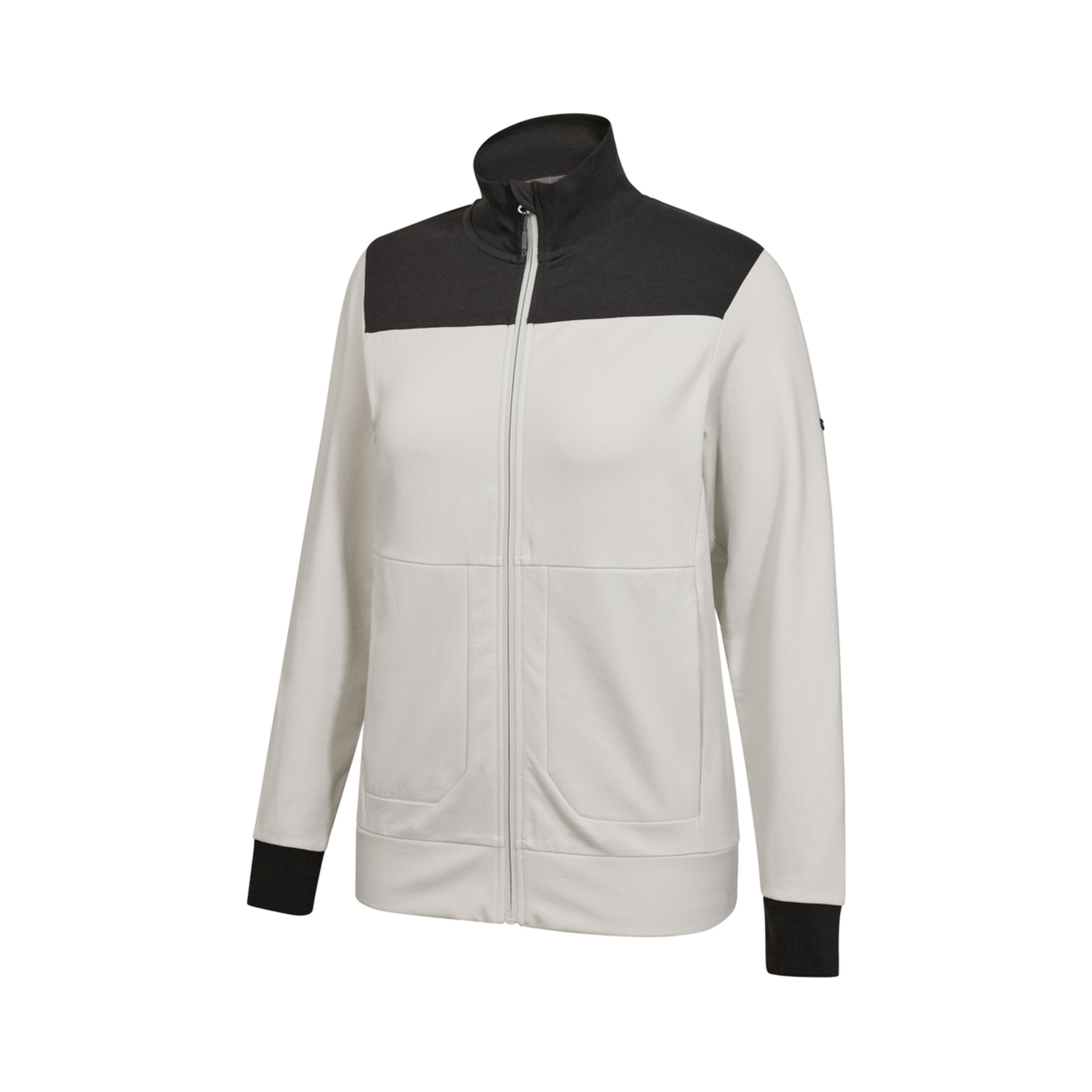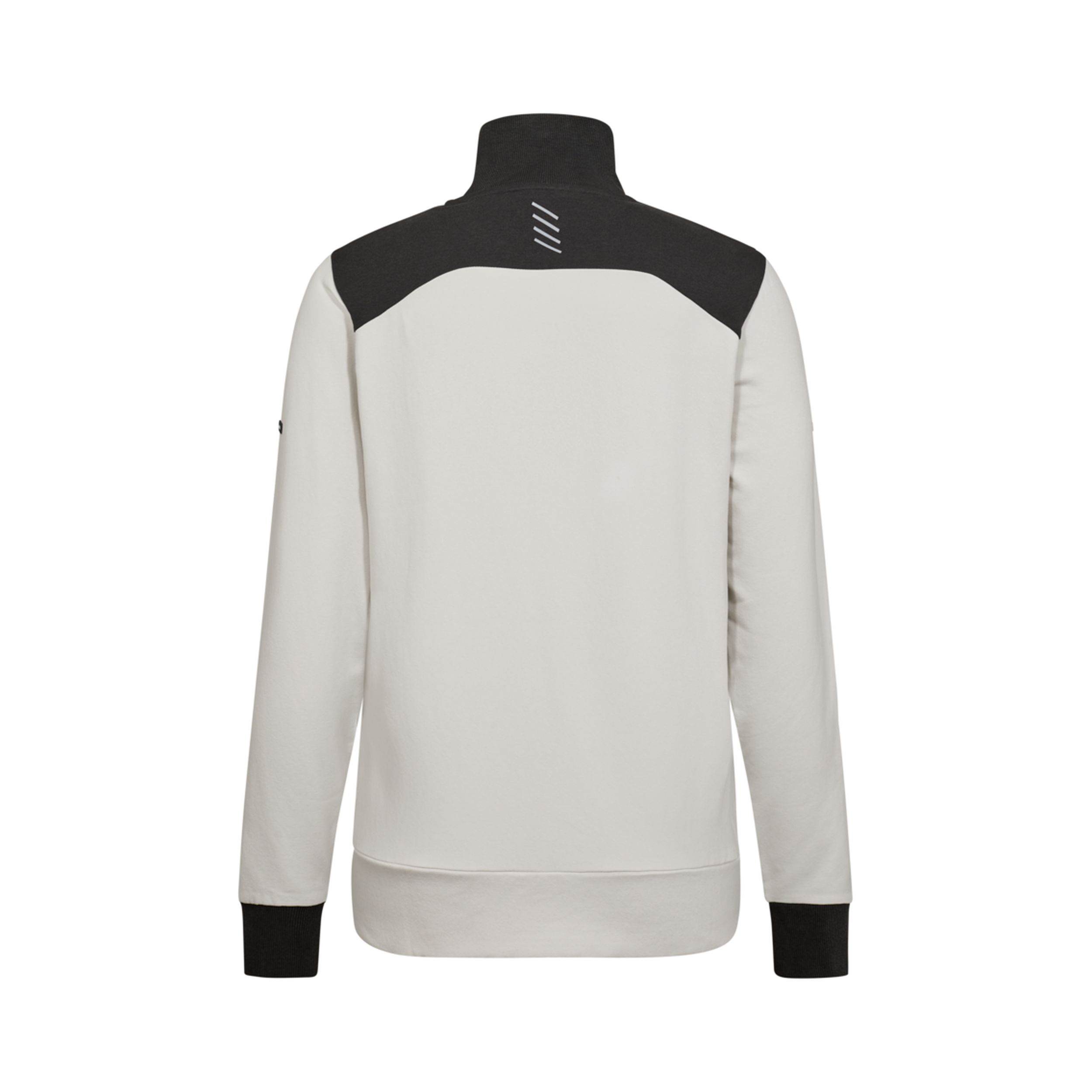 Die leicht angeraute Innenseite sorgt für ein weiches, wärmendes Tragegefühl, ideal für kühlere Tage oder als Zwischenschicht. Der hohe Kragen schützt den Halsbereich vor Wind und Kälte, während der durchgehende Reißverschluss ein einfaches An- und Ausziehen ermöglicht. Gerippte Bündchen an Kragen, Ärmeln und Saum bieten einen sicheren Sitz und unterstreichen die sportlich-funktionale Optik. Zwei Seitentaschen mit Reißverschluss bieten ausreichend Platz für Utensilien, Ausweise oder persönliche Gegenstände.