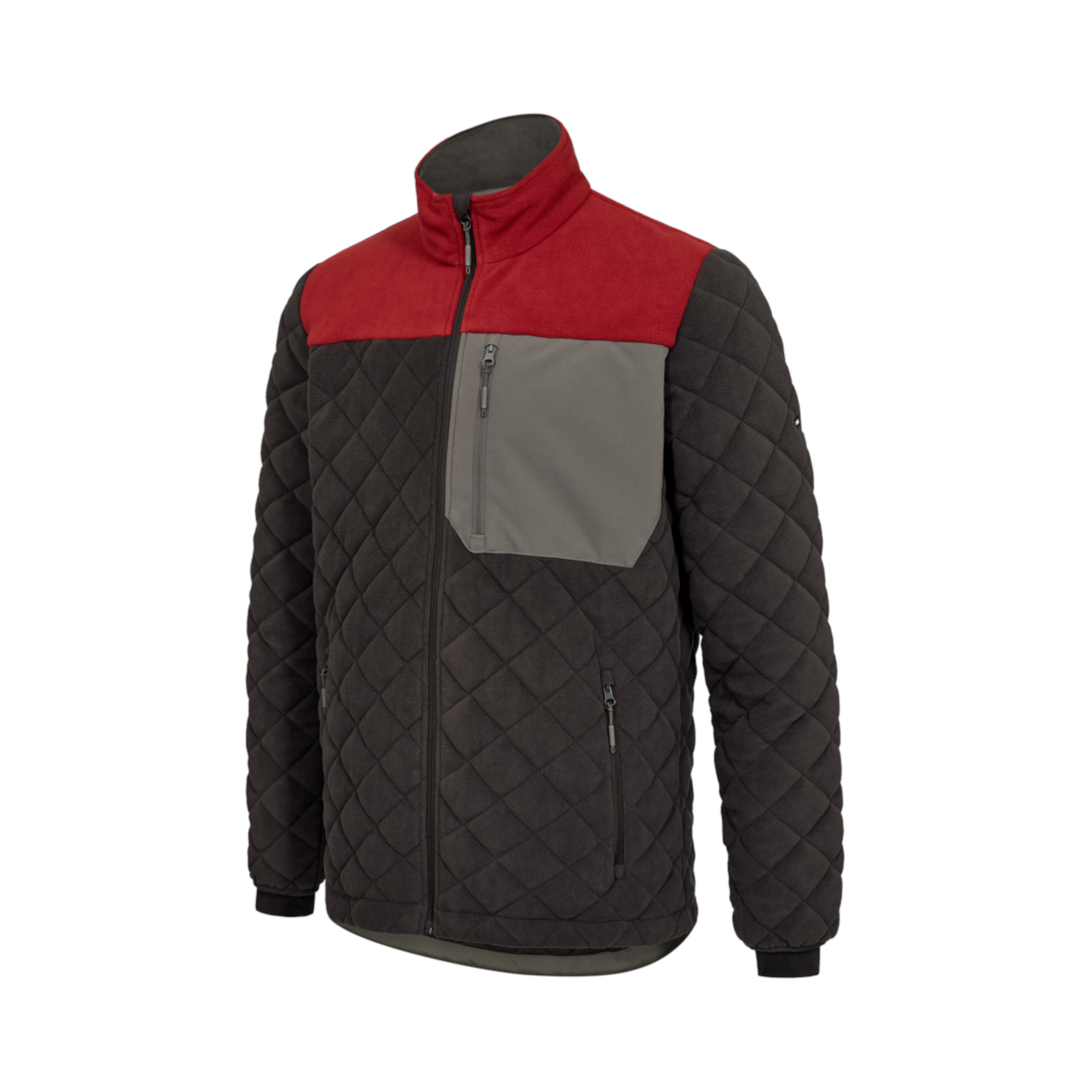Das elastische Stretchfutter sorgt für hervorragende Bewegungsfreiheit, während die wattierte, gesteppte Vorderseite für angenehme Wärmeisolierung bei kühleren Temperaturen sorgt – ohne aufzutragen oder die Beweglichkeit einzuschränken. Praktisch im Arbeitsalltag sind die durchdachten Stauraumlösungen: Eine Brusttasche und zwei Seitentaschen – alle mit Reißverschluss – sowie zwei große Innentaschen mit Klettverschluss bieten Platz für Werkzeuge, Notizen oder persönliche Gegenstände. Der durchgehende Frontreißverschluss mit Kinnschutz erleichtert das An- und Ausziehen und erhöht den Tragekomfort.