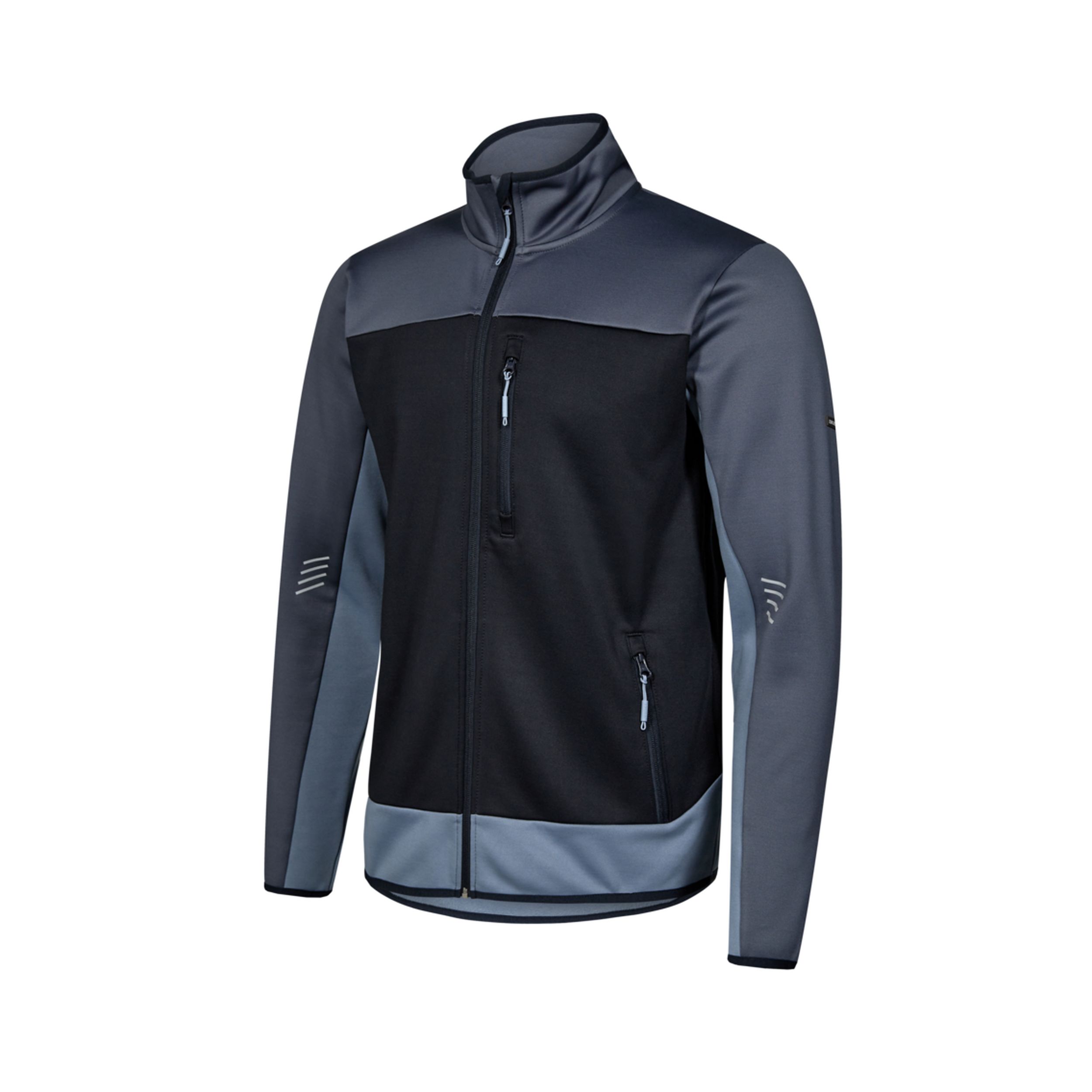 Reflektierende Details an Ärmeln und Rücken erhöhen die Sichtbarkeit bei schlechten Lichtverhältnissen und tragen zur Sicherheit bei. Der Midlayer-Cardigan ist in mehreren modernen Farbkombinationen erhältlich, unter anderem in Anthrazit/Schwarz, Navy und Forest Green. Er wird in einem breiten Größenlauf von XS bis 6XL angeboten und ist damit für viele Trägerinnen und Träger geeignet. Pflegehinweis: Maschinenwaschbar bei 40 °C. Nicht trocknergeeignet. Für langanhaltende Funktionalität empfiehlt sich eine schonende Pflege.