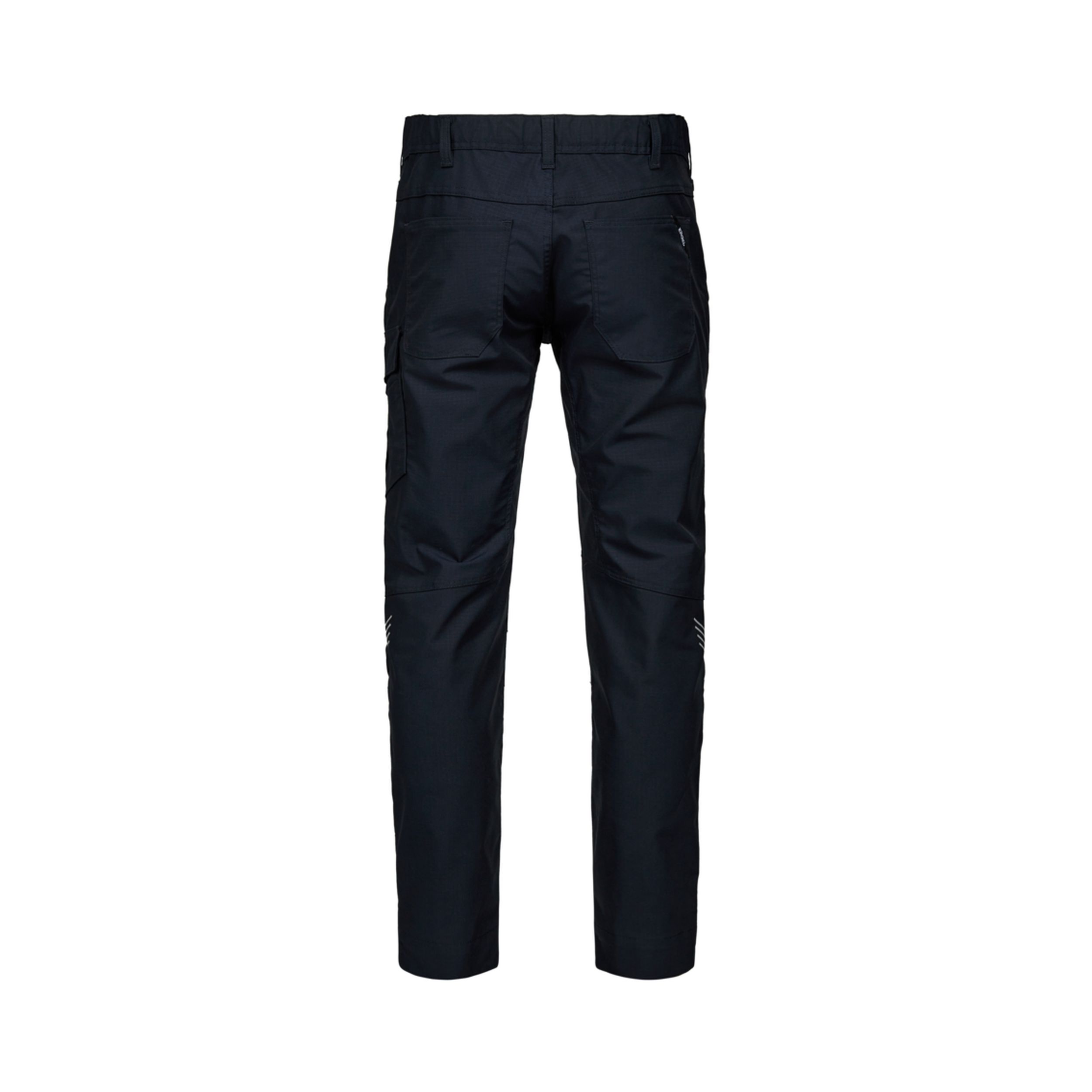 Das robuste Ripstop-Gewebe mit integriertem Stretch passt sich jeder Bewegung an und bleibt gleichzeitig formstabil. Ein verdeckter Verschluss verhindert Kratzer auf empfindlichen Oberflächen. Der elastische Einsatz im Rückenbereich sorgt für optimalen Sitz, selbst bei körperlich anspruchsvollen Tätigkeiten. Zahlreiche funktionale Details wie eine Oberschenkeltasche mit separater Handytasche, Knöpfe zur Befestigung von Holstertaschen sowie ein praktischer D-Ring zur Aufnahme von Ausweisen oder Werkzeug bieten durchdachte Lösungen für den Arbeitsalltag. Zusätzlich lässt sich die Beinlänge dank extra breitem Hosenaufschlag unkompliziert um bis zu 6 cm verlängern. Ein reflektierender Print im Kniebereich erhöht die Sichtbarkeit bei schlechten Lichtverhältnissen.