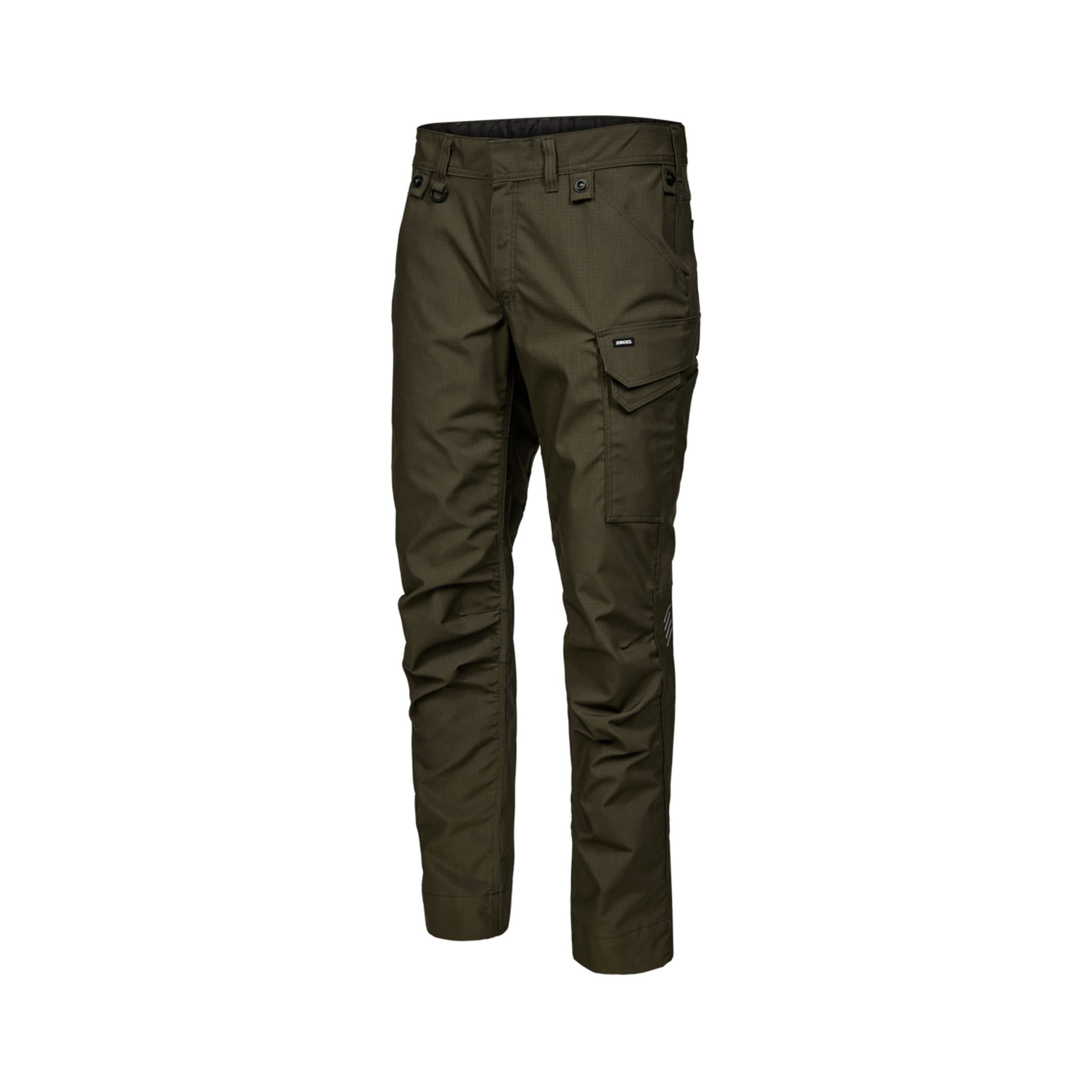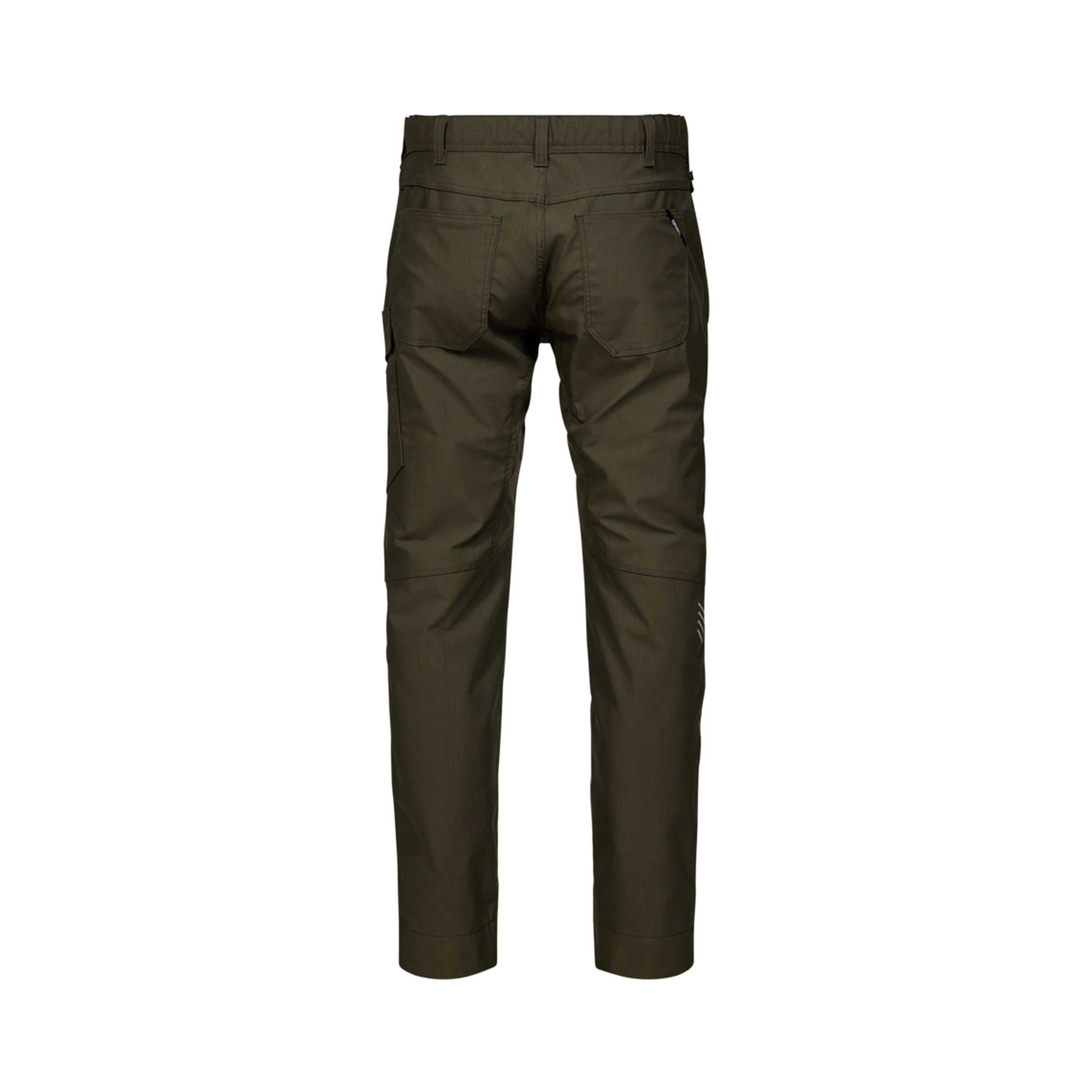 Das robuste Ripstop-Gewebe mit integriertem Stretch passt sich jeder Bewegung an und bleibt gleichzeitig formstabil. Ein verdeckter Verschluss verhindert Kratzer auf empfindlichen Oberflächen. Der elastische Einsatz im Rückenbereich sorgt für optimalen Sitz, selbst bei körperlich anspruchsvollen Tätigkeiten. Zahlreiche funktionale Details wie eine Oberschenkeltasche mit separater Handytasche, Knöpfe zur Befestigung von Holstertaschen sowie ein praktischer D-Ring zur Aufnahme von Ausweisen oder Werkzeug bieten durchdachte Lösungen für den Arbeitsalltag. Zusätzlich lässt sich die Beinlänge dank extra breitem Hosenaufschlag unkompliziert um bis zu 6 cm verlängern. Ein reflektierender Print im Kniebereich erhöht die Sichtbarkeit bei schlechten Lichtverhältnissen.