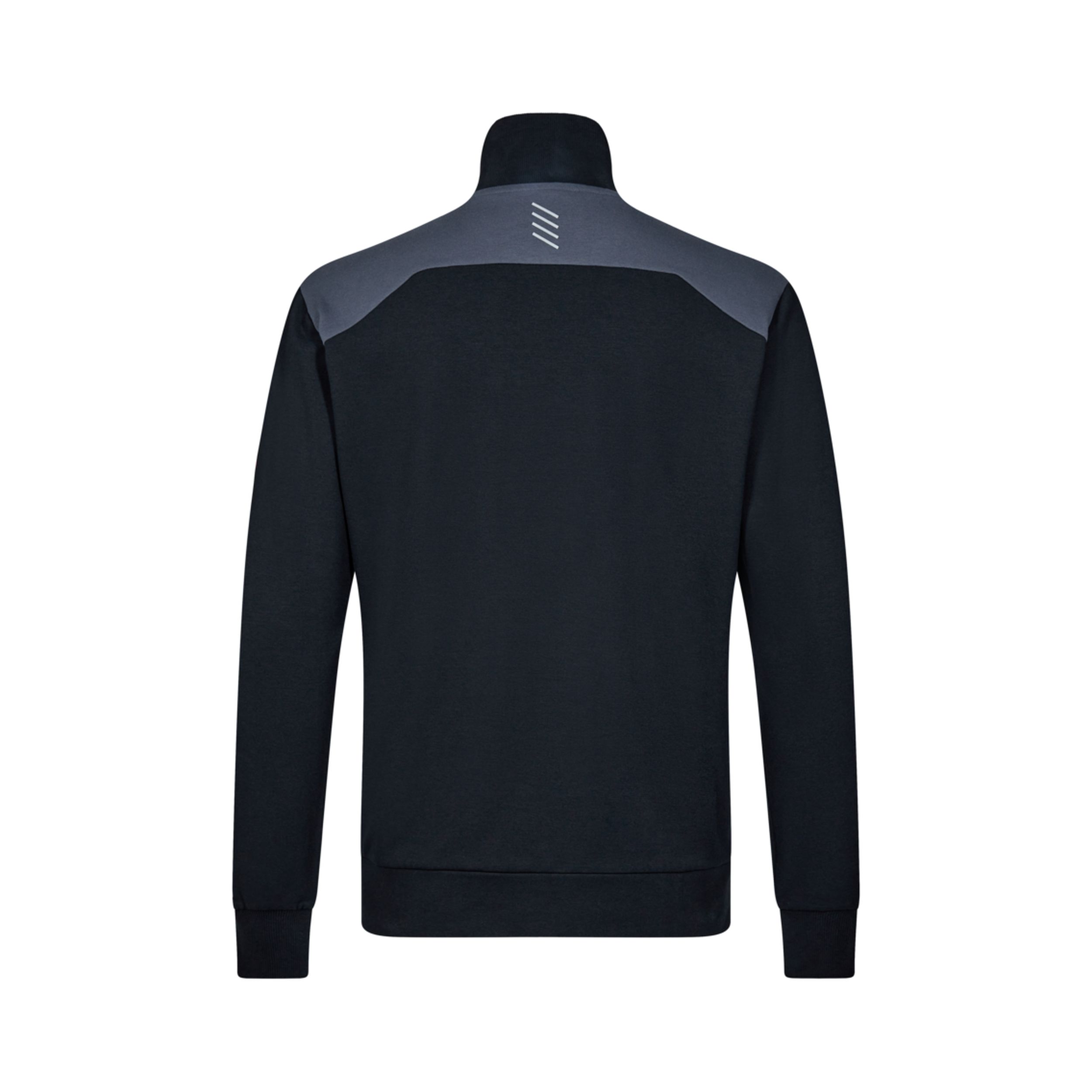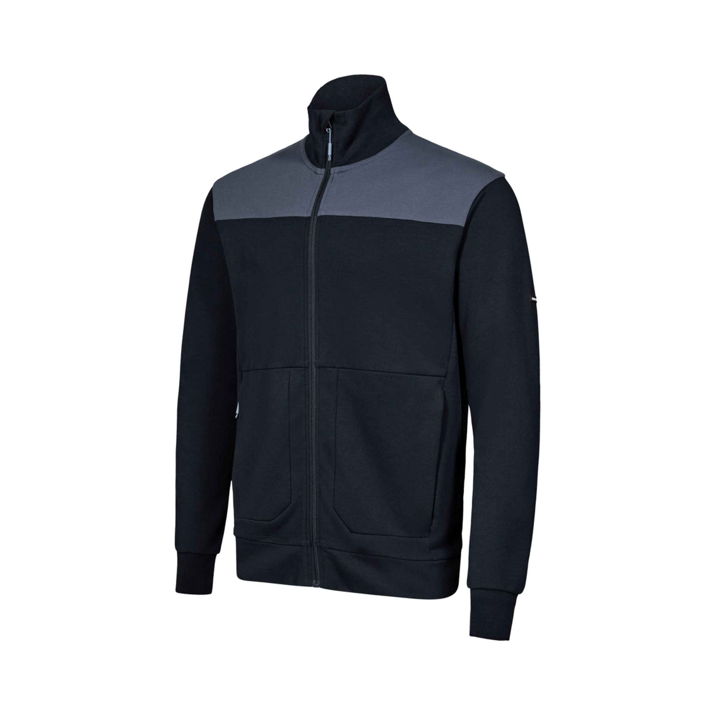 Die weich angeraute Innenseite sorgt für ein besonders komfortables Tragegefühl, auch an kühleren Tagen. Dank Vorwäsche bleibt die Passform auch nach häufigem Waschen konstant. Ausgestattet ist der Sweatcardigan mit einem hohen Stehkragen, einem durchgehenden Frontreißverschluss sowie zwei praktischen Reißverschlusstaschen an den Seiten für persönliche Gegenstände oder Arbeitsutensilien. Rippbündchen an Kragen, Ärmeln und Saum sorgen für einen optimalen Sitz und halten die Körperwärme zuverlässig am Platz. Reflektierende Druckelemente an Rücken und Ärmeln erhöhen die Sichtbarkeit bei schlechten Lichtverhältnissen – ein Plus an Sicherheit bei Arbeiten im Außenbereich.