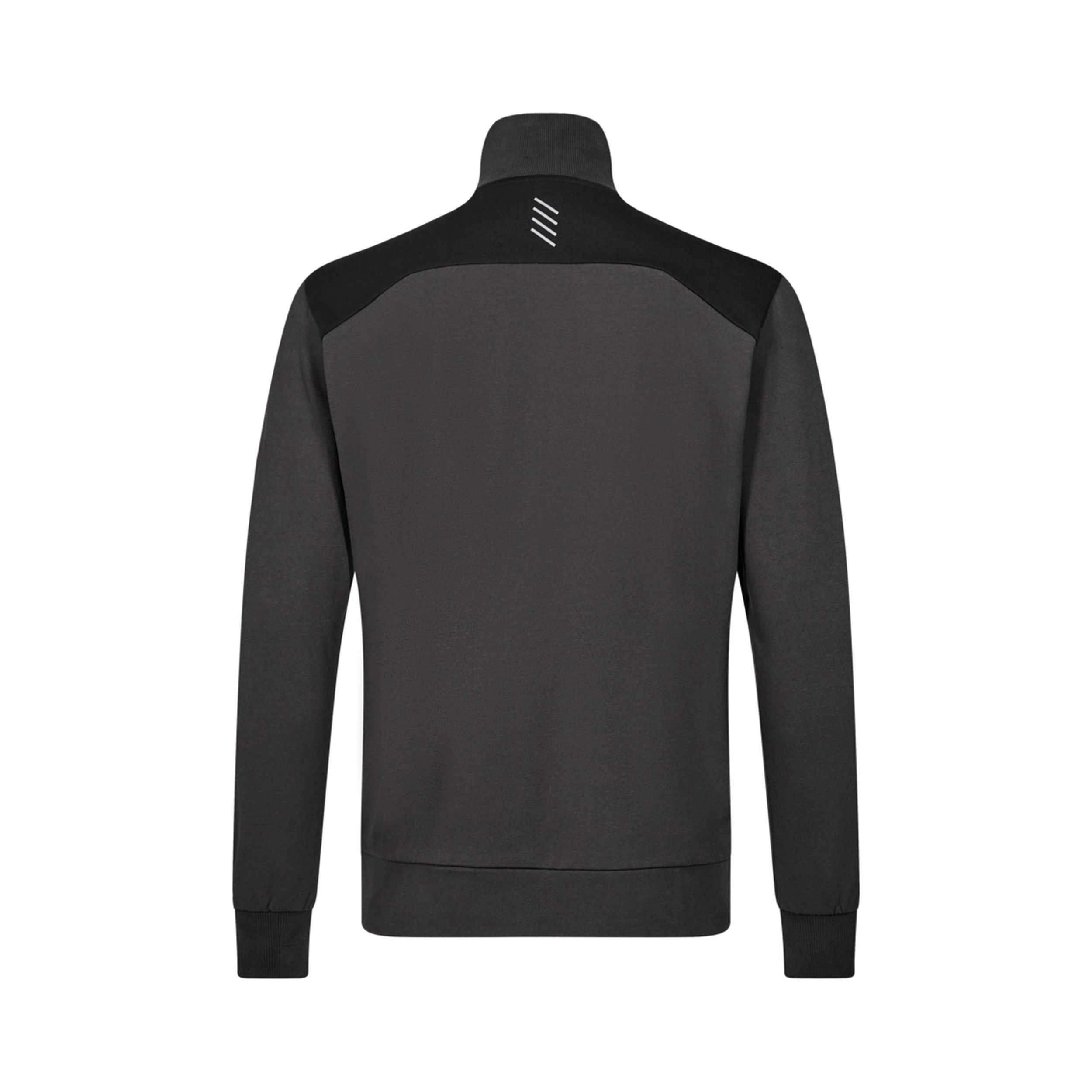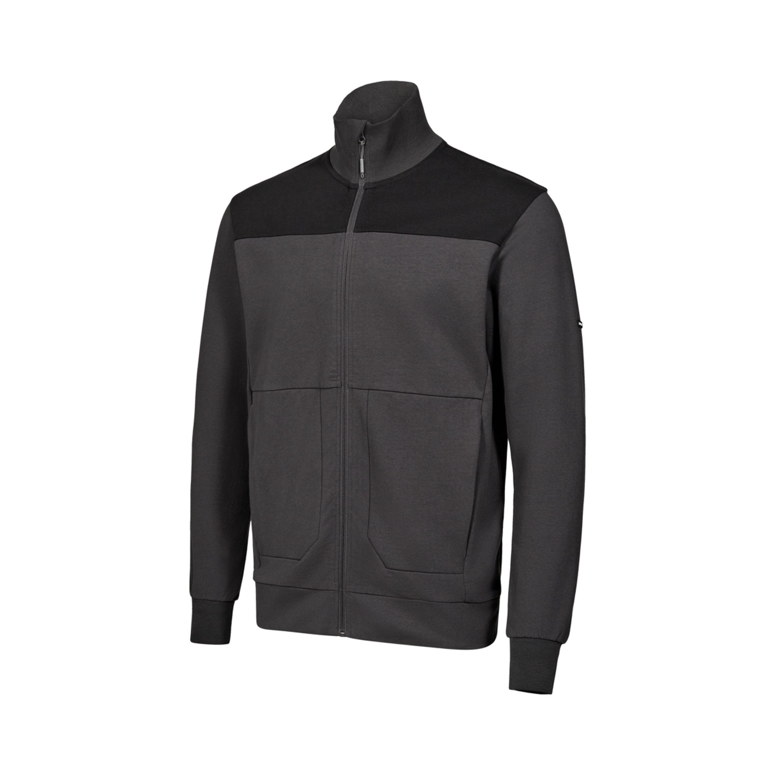 Die weich angeraute Innenseite sorgt für ein besonders komfortables Tragegefühl, auch an kühleren Tagen. Dank Vorwäsche bleibt die Passform auch nach häufigem Waschen konstant. Ausgestattet ist der Sweatcardigan mit einem hohen Stehkragen, einem durchgehenden Frontreißverschluss sowie zwei praktischen Reißverschlusstaschen an den Seiten für persönliche Gegenstände oder Arbeitsutensilien. Rippbündchen an Kragen, Ärmeln und Saum sorgen für einen optimalen Sitz und halten die Körperwärme zuverlässig am Platz. Reflektierende Druckelemente an Rücken und Ärmeln erhöhen die Sichtbarkeit bei schlechten Lichtverhältnissen – ein Plus an Sicherheit bei Arbeiten im Außenbereich.