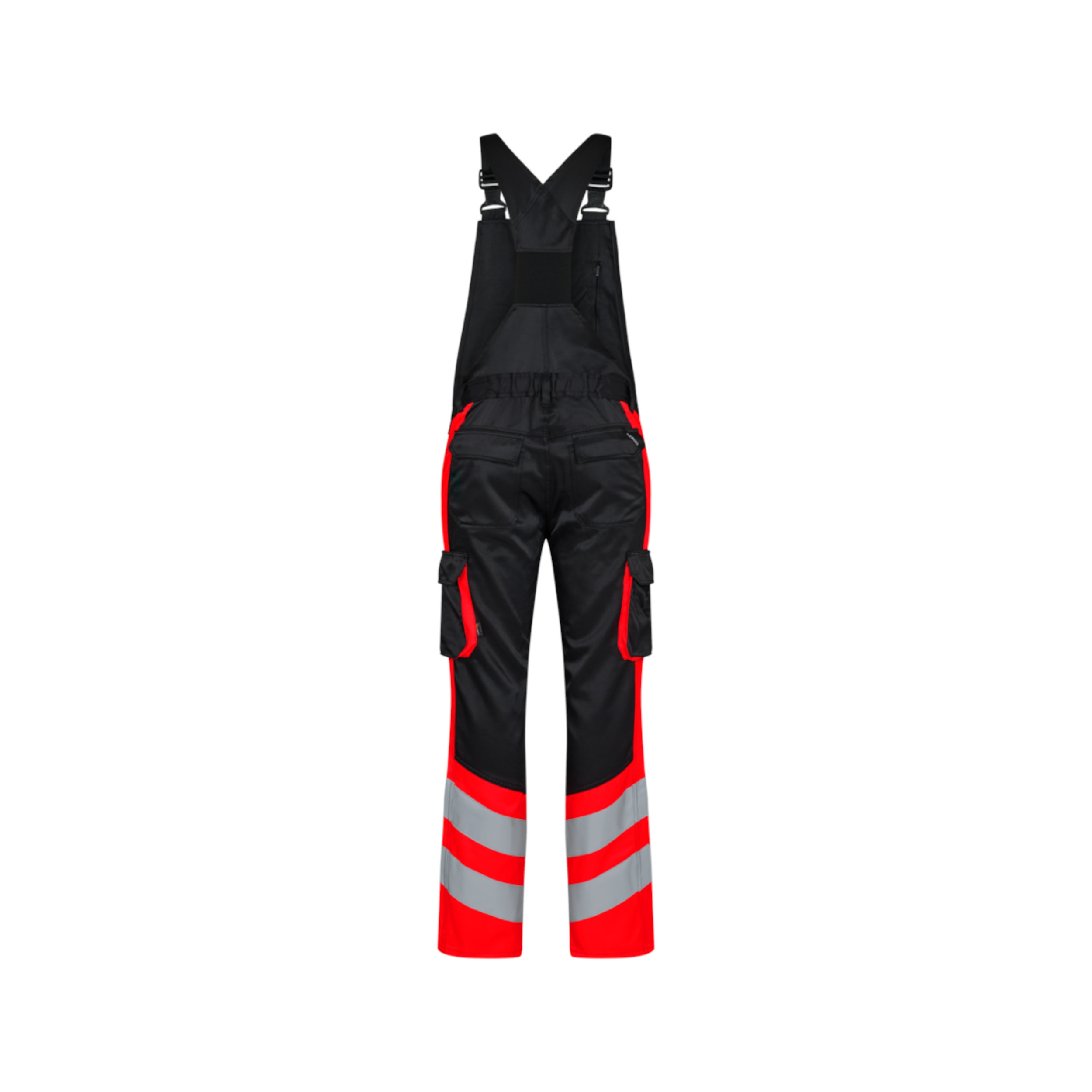 Dank fluoreszierender Materialien in verschiedenen Farbkombinationen – beispielsweise HiVis-Gelb, HiVis-Orange oder HiVis-Rot in Verbindung mit klassischen Kontrastfarben wie Grün, Marine oder Schwarz – ist für nahezu jeden Einsatzbereich die passende Variante verfügbar. Die segmentierten Reflexstreifen erfüllen die Anforderungen der EN ISO 20471 (Klasse 1) und gewährleisten eine zuverlässige Sichtbarkeit bei Tag, Dämmerung und Dunkelheit. Ergänzend erfüllt die Hose die Norm EN ISO 13688 für allgemeine Schutzkleidung. Die Latzhose überzeugt durch ergonomischen Schnitt, verstellbare Träger mit elastischem Einsatz und zahlreiche funktionale Taschenlösungen wie Brusttasche, Schenkeltaschen, Zollstocktasche, Gesäßtaschen mit Patte und Klett sowie Vordertaschen. Verstärkte Belastungspunkte erhöhen die Strapazierfähigkeit und verlängern die Lebensdauer.