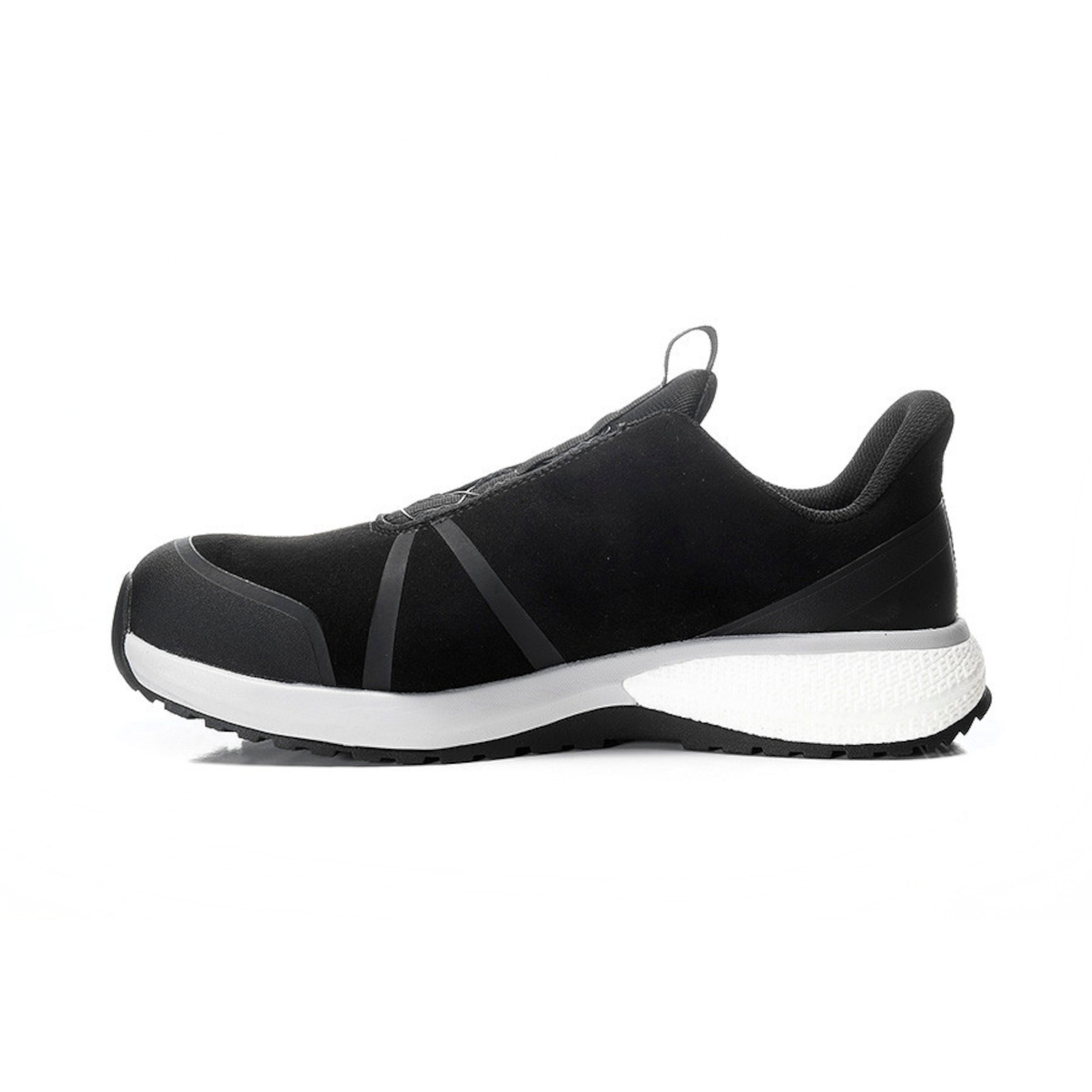 Das atmungsaktive Textilfutter unterstützt ein angenehmes Fußklima auch bei langen und intensiven Arbeitstagen. Zertifiziert nach EN ISO 20345:2022 S3S FO/SR bietet dieser Sicherheitsschuh umfassenden Schutz. Eine robuste Stahlkappe schützt zuverlässig vor Stoß- und Druckbelastungen, während der metallfreie Durchtrittschutz das Risiko durch spitze Gegenstände minimiert. Die ESD-Ausstattung ermöglicht den sicheren Einsatz in elektrostatisch sensiblen Arbeitsumgebungen. Besonders praxisgerecht ist das integrierte BOA® Fit System, das ein schnelles, präzises Anpassen des Schuhs ermöglicht und für dauerhaft sicheren Halt sorgt – auch bei häufigem An- und Ausziehen.