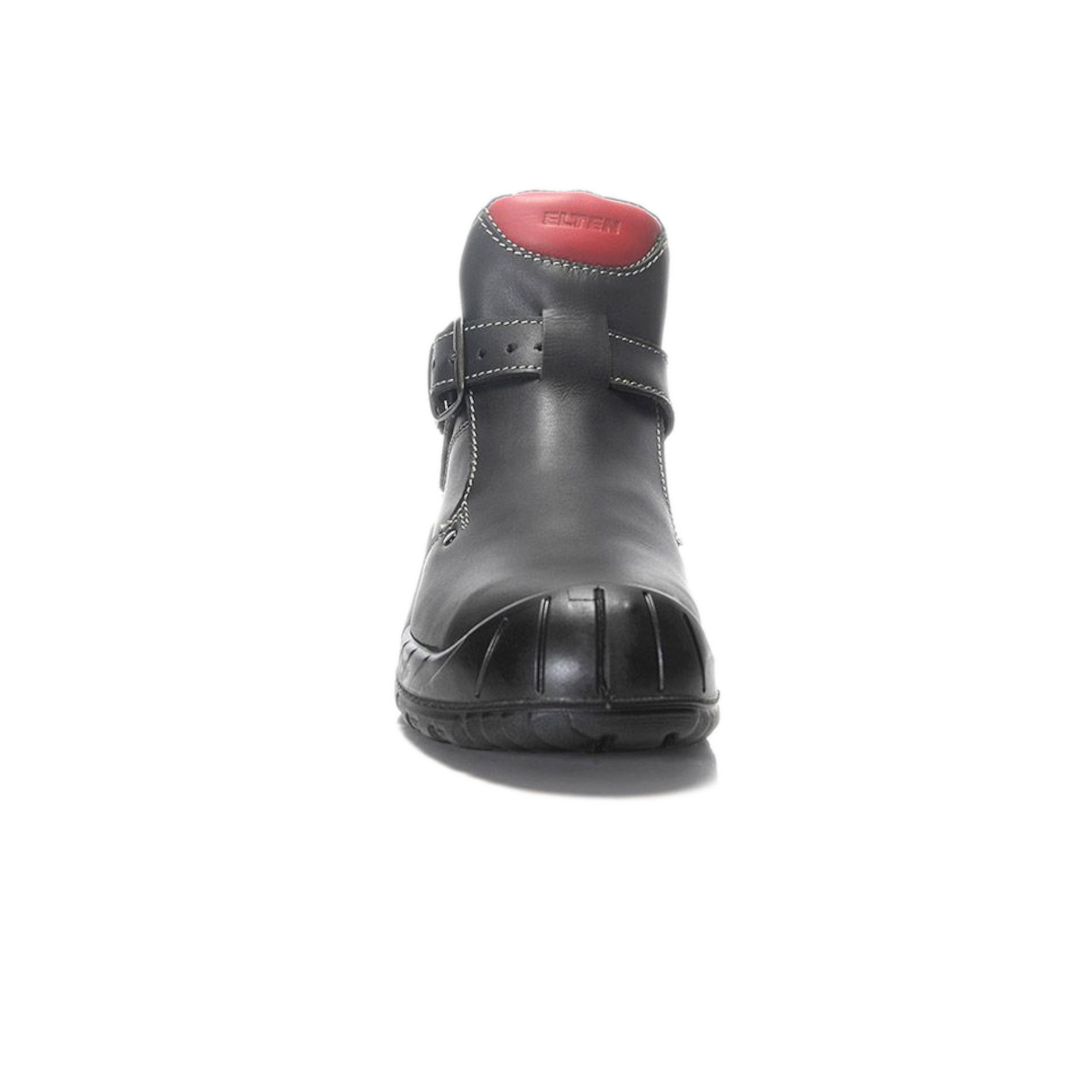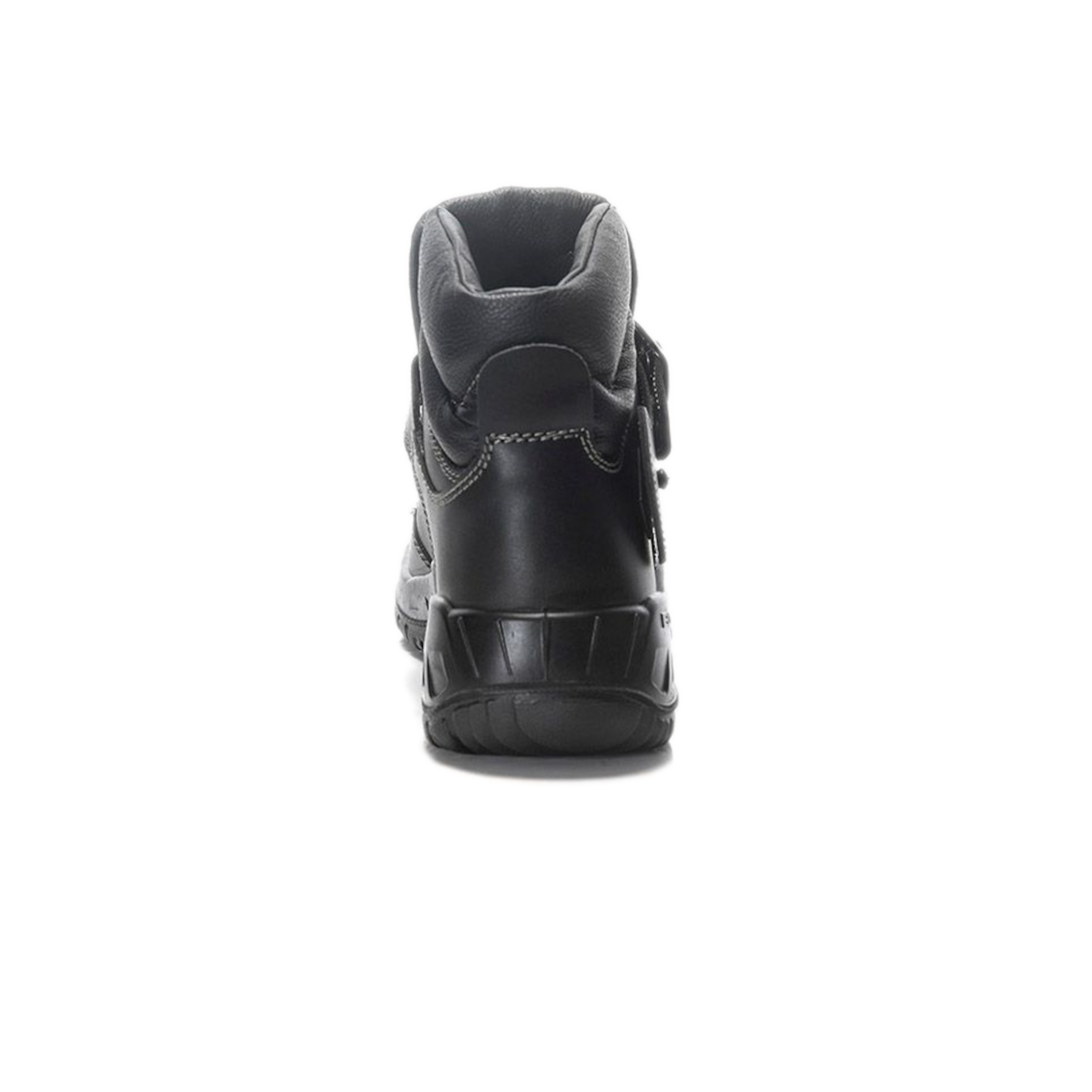 Der Schnellverschluss kombiniert mit einer individuellen Lascheneinstellung über eine zusätzliche Schnalle ermöglicht eine passgenaue Anpassung und zügiges Öffnen und Schließen des Stiefels – besonders praktisch in kritischen Arbeitssituationen. Im Inneren sorgt ein atmungsaktives Lederfutter für angenehmes Fußklima, unterstützt von der durchgehenden Einlegesohle „Basic Grey“. Die antistatische Softvlies-Brandsohle sowie die durchtrittsichere Stahlzwischensohle bieten zuverlässigen Schutz gegen elektrische Aufladungen und punktuelle Belastung.