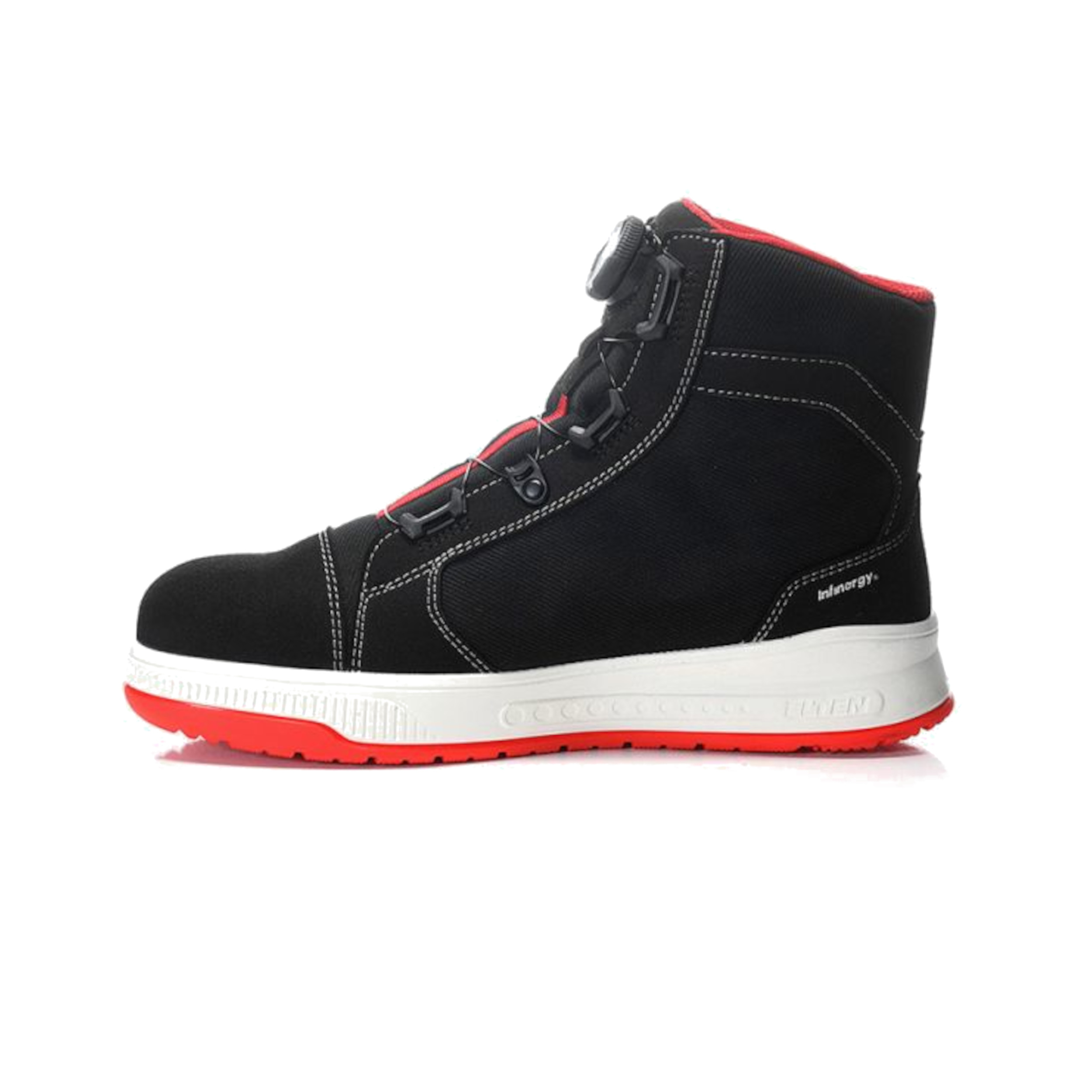 Ausgestattet mit dem innovativen BOA® Fit System ermöglicht der Schuh ein schnelles, präzises Verschließen und einen optimalen Sitz – ideal für den täglichen Einsatz. Die ergonomische Passform sowie die dämpfende Sohlenkonstruktion sorgen für hohen Tragekomfort und entlasten den Fuß nachhaltig. Der Sicherheitsstiefel ist in den Größen 36 bis 48 erhältlich und überzeugt durch seine markante Farbgebung in Schwarz/Rot. Pflegeleicht und robust ausgelegt, ist dieses Modell ein zuverlässiger Begleiter im anspruchsvollen Arbeitsalltag.