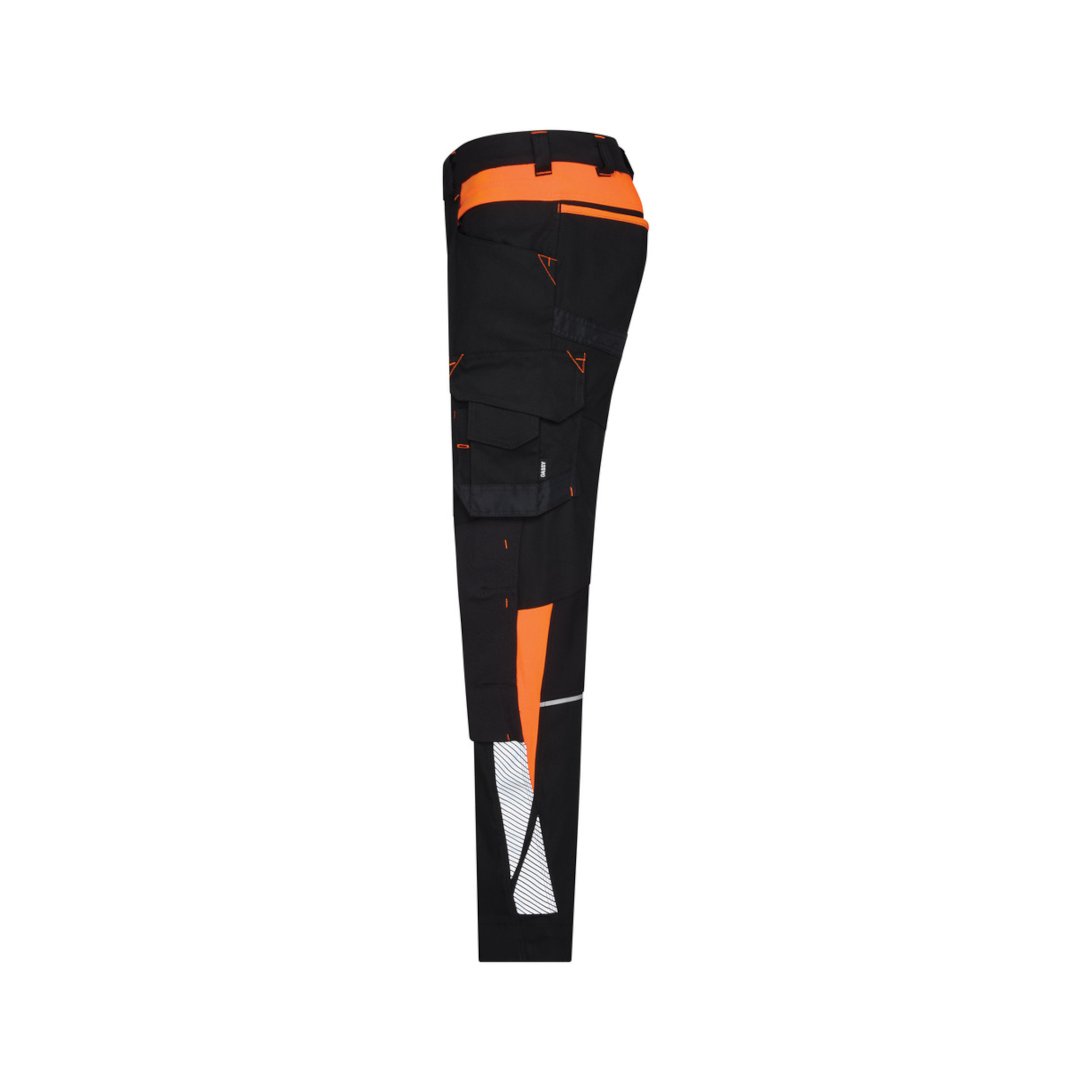 Zudem ist sie mit einem Ausweishalter und reflektierenden Details für mehr Sichtbarkeit ausgestattet. Die Hose ist in den Farben Schwarz/Neongelb und Nachtblau/Neongelb erhältlich und in verschiedenen Schrittlängen (Standard, Minus, Plus) sowie in den Größen 42 bis 67 verfügbar. Sie ist nach EN 14404 in Kombination mit passenden Kniepolstern zertifiziert. Waschbar bei 60 °C, trocknergeeignet und bügelbar – ideal für den täglichen Einsatz bei hoher Beanspruchung.