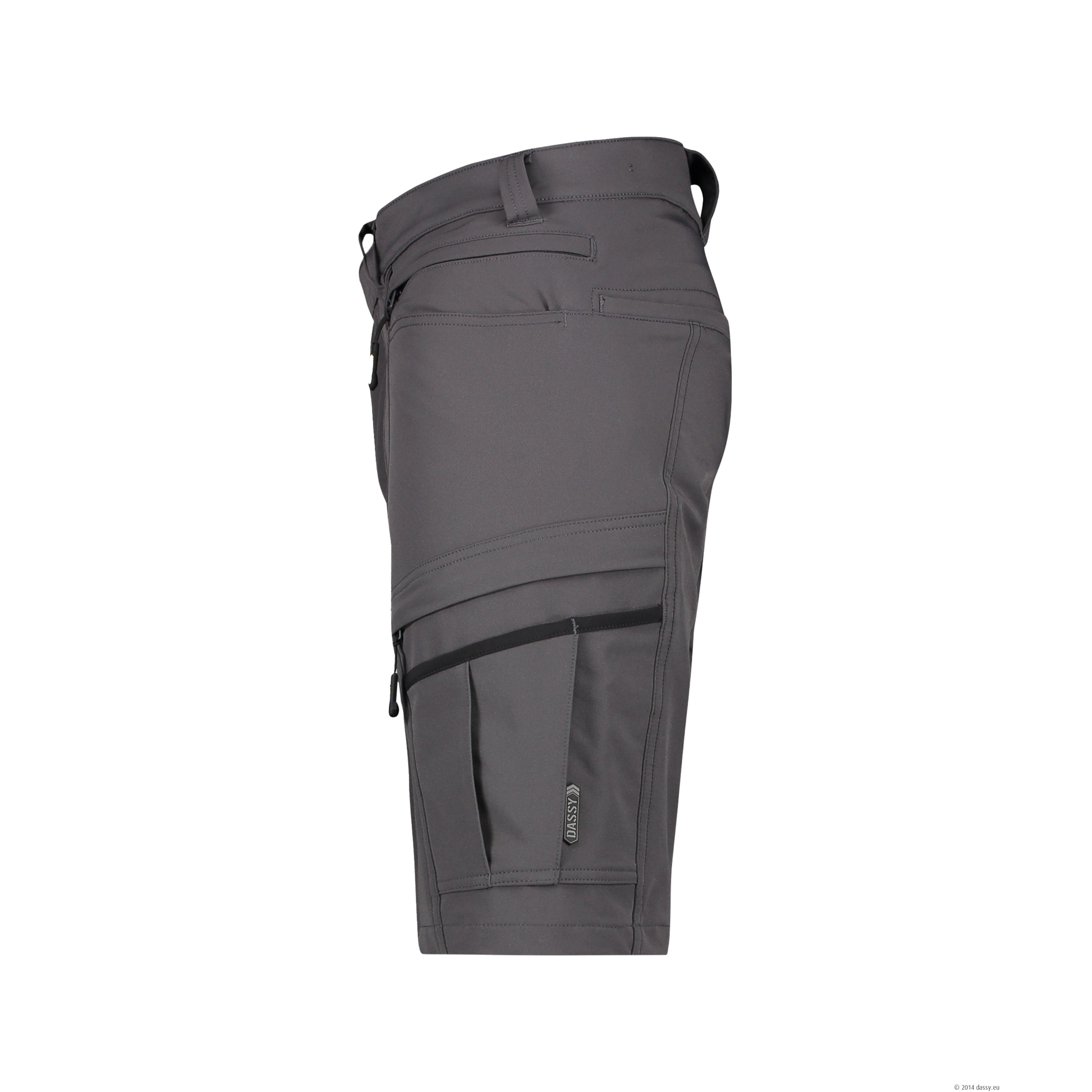 Das Material ist zudem OEKO‑TEX® Standard 100 zertifiziert, frei von schädlichen Substanzen – ideal für Hautkontakt auch bei langem Tragen. Gut durchdachte Details machen die Sparx‐Shorts besonders praxisgerecht: Zwei Schub‑, zwei offene Gesäßtaschen sowie mehrere Schenkeltaschen bieten viel Stauraum. Besonderheiten wie eine Handytasche, eine mit Reißverschluss gesicherte Sicherheitstasche, ein Stifte‑ und ein Zollstockfach, ein D‑Ring und eine verstellbare Rückenelastik sorgen für Komfort und Funktion. Die Verarbeitung mit doppelten Kappnähten, der slim‑fit Schnitt und ein verdeckter Hakenverschluss kombiniert mit Druckknopf und Reißverschluss unterstreichen den robusten Charakter.