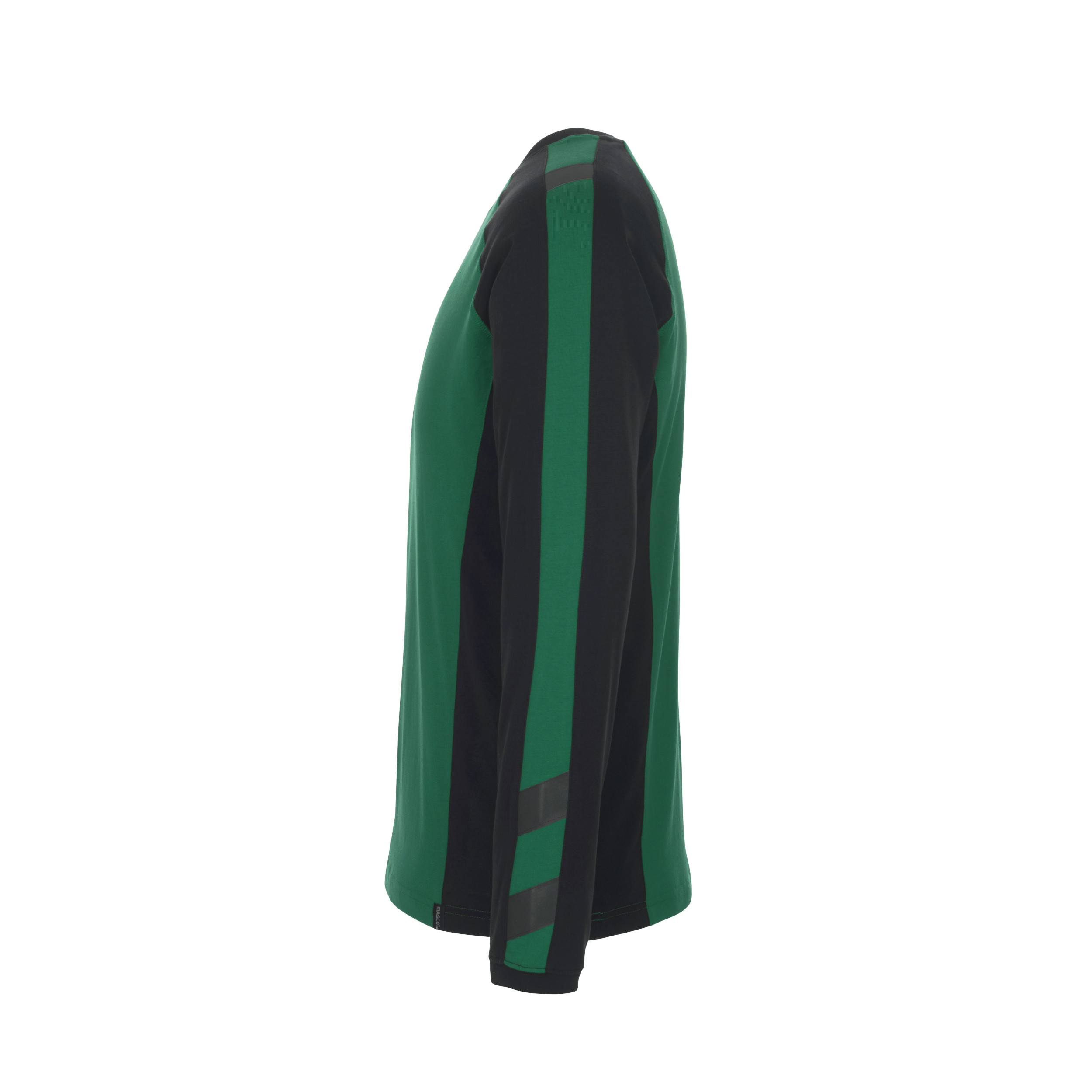 Eine optimierte Fläche zum Anbringen eines Firmenlogos erleichtert die Individualisierung im Corporate Design. Das Langarm‑T‑Shirt ist für Industriewäsche geeignet und nach dem OEKO‑TEX® Standard 100 zertifiziert – ein Zeichen für geprüfte Materialqualität. Es ist in mehreren Farbkombinationen erhältlich und damit optimal zur Abstimmung auf Firmenfarben oder Einsatzbereich auswählbar.